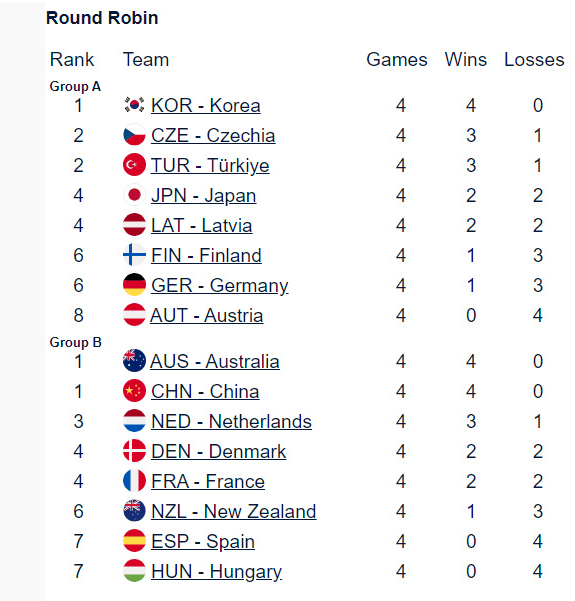 四轮比赛战罢,中国队和澳大利亚四战全胜领跑B组,A组韩国四连胜一枝独秀。